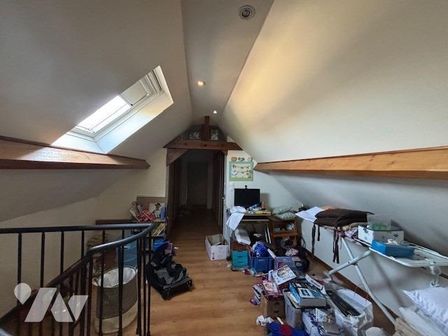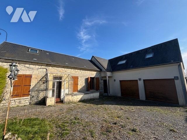 Dans un village à 15 min de Soissons, jolie maison en pierres, d'une surface habitable de 126 m², comprenant : Entrée, Cellier, WC, Cuisine, Séjour avec Poêle à Granulés, Chambre. Etage : Palier, Salle de bains-WC, Dégagement placards, Chambre, Deux pièces mansardées avec placards, Bureau "salle de jeux". Garage. Cave. Chauffage individuel électrique. Terrain clos.